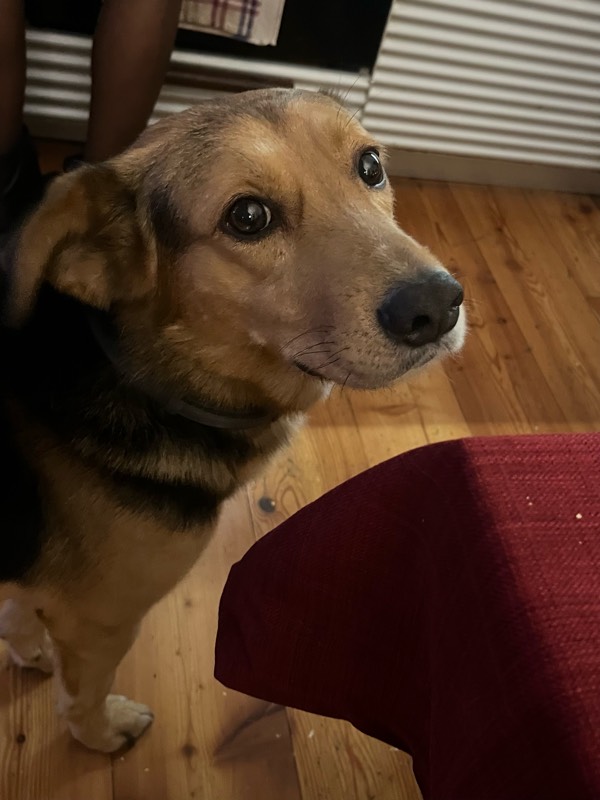 友達のニューワンコ。田舎の家の前に、「いつも間にかいた」らしい元野良犬のルネディ。ルネディは月曜日の意味。「月曜日にうちの子になったから」が理由です!変てこな名前ですがw、面白い。