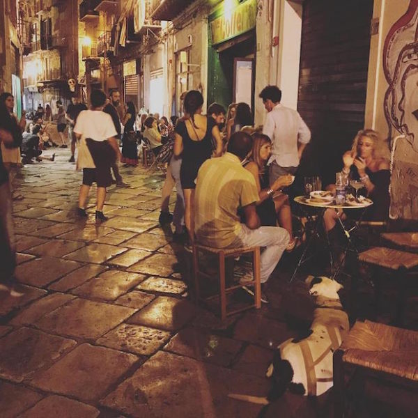 この週末、旧市街の美術館でオープニングイベントがありまして、これらの写真は、その帰り。20時過ぎのパレルモの色です。