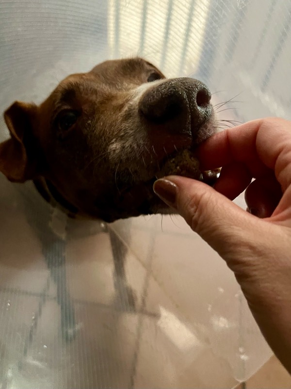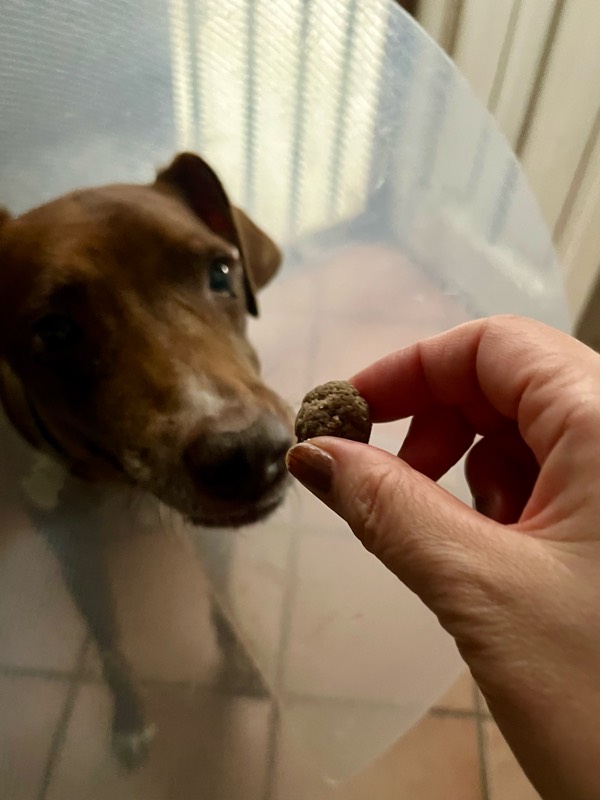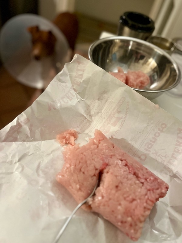 術後は、どう考えても液体の食事か、せめてペースト状のもの?と思っていたけど、先生の指導で、手術の夜からミートボールをあげてます。