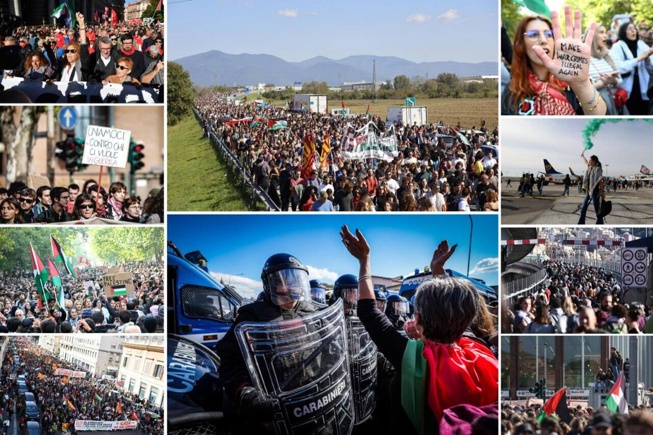 10月2日、昨夜はガザで殺害された医療関係者1677名の葬いフラッシュモブがイタリア100ヶ所の病院前で行われたりして、そして、本日。学校や公務員、交通機関などで全国スト。大規模なデモが行われてます。