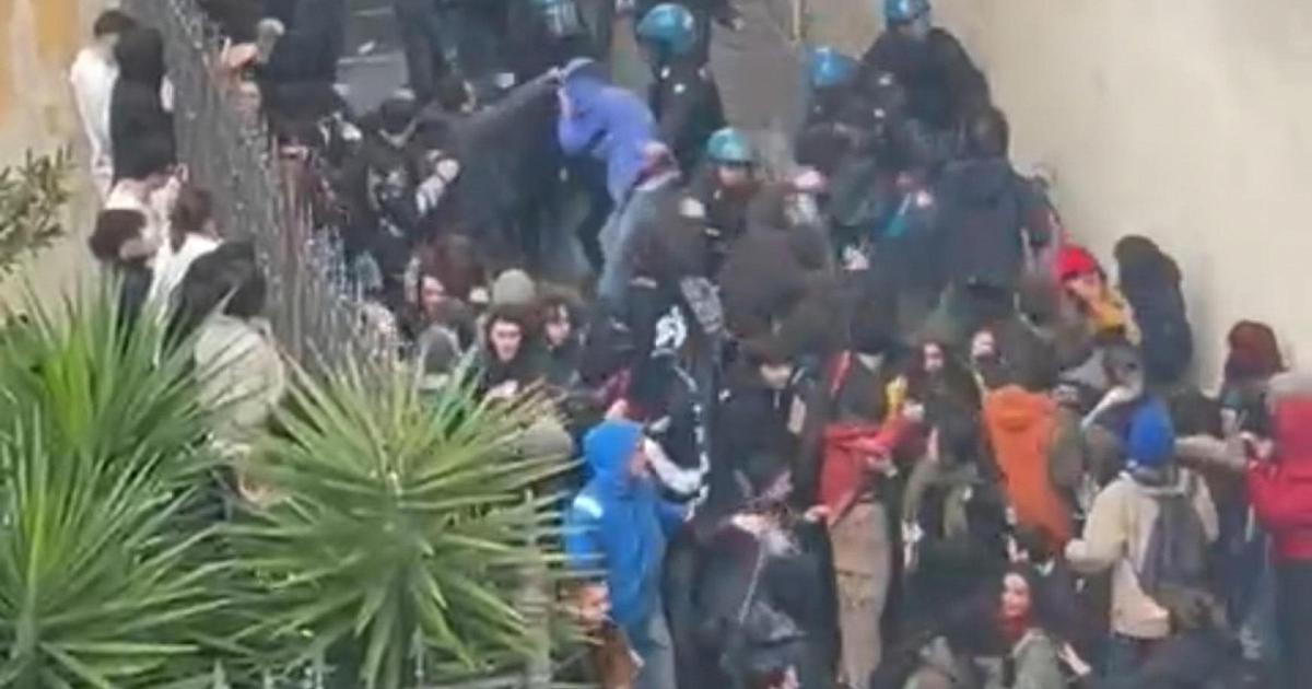 ピサとフィレンツェ起きた学生のデモ隊と警察の衝突