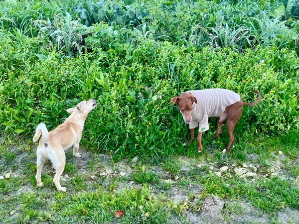 お互い吠えることもなく、微妙な距離感を保ったままでしたが、