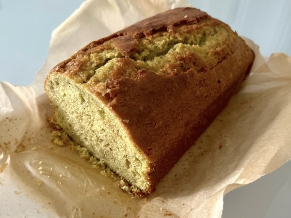 美しい緑色のオイルも、焼くとさすがに緑色は消えてしまう…から、抹茶パウダーをプラスして、ノヴェッロケーキ感を出しています。