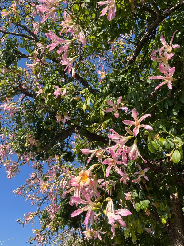 カポック(もしくはコリシア・スペチョーザ)、日本語だと「トックリキワタ」と呼ぶことを、今年になって知りました。たしかに、トックリ風。