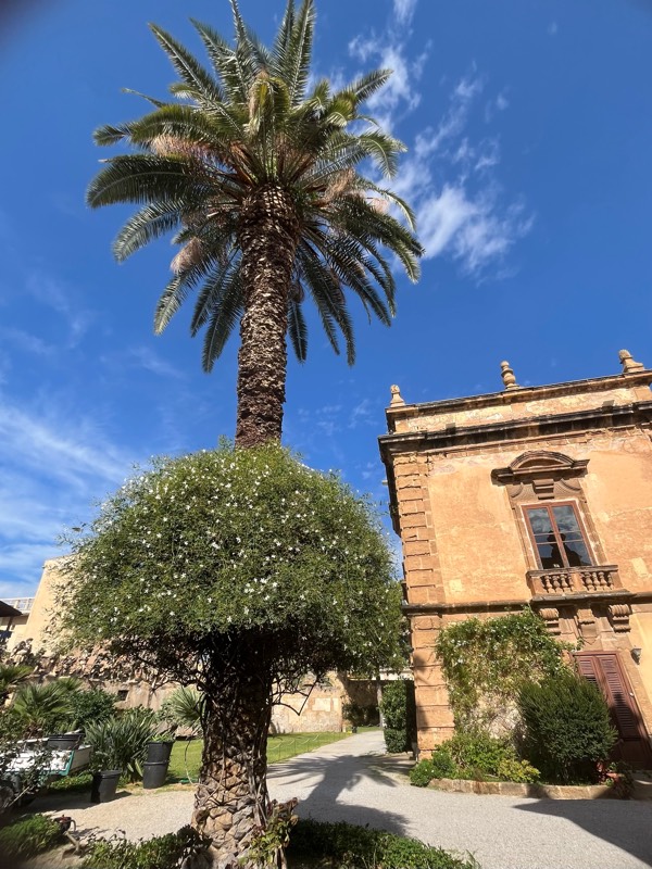 パレルモで椰子は、そのまっすぐな幹があるせいか、藤やブーゲンビリアに巻かれている姿を見ることがありますが、ジャスミンは、初めて見た。