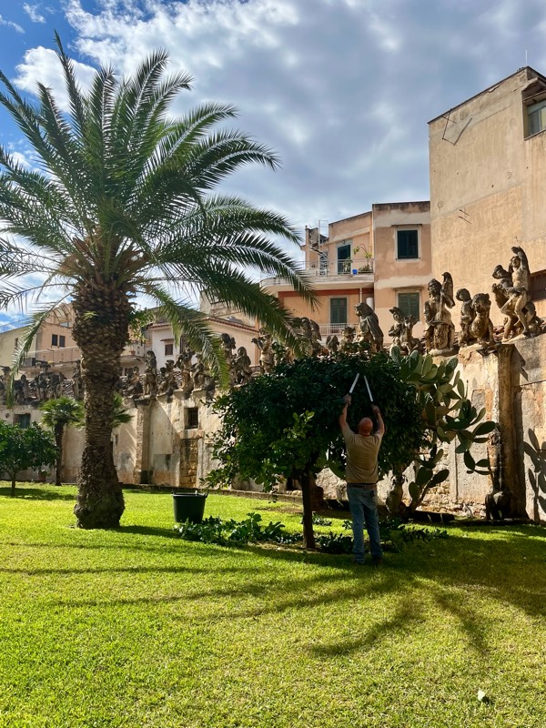 と、思ってたところに、オレンジの木を剪定していた庭師を発見。