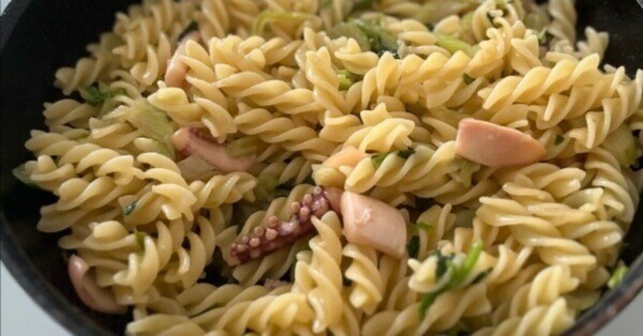 イカとセロリの貝の鍋だし炒め流用パスタがさらに激うまー