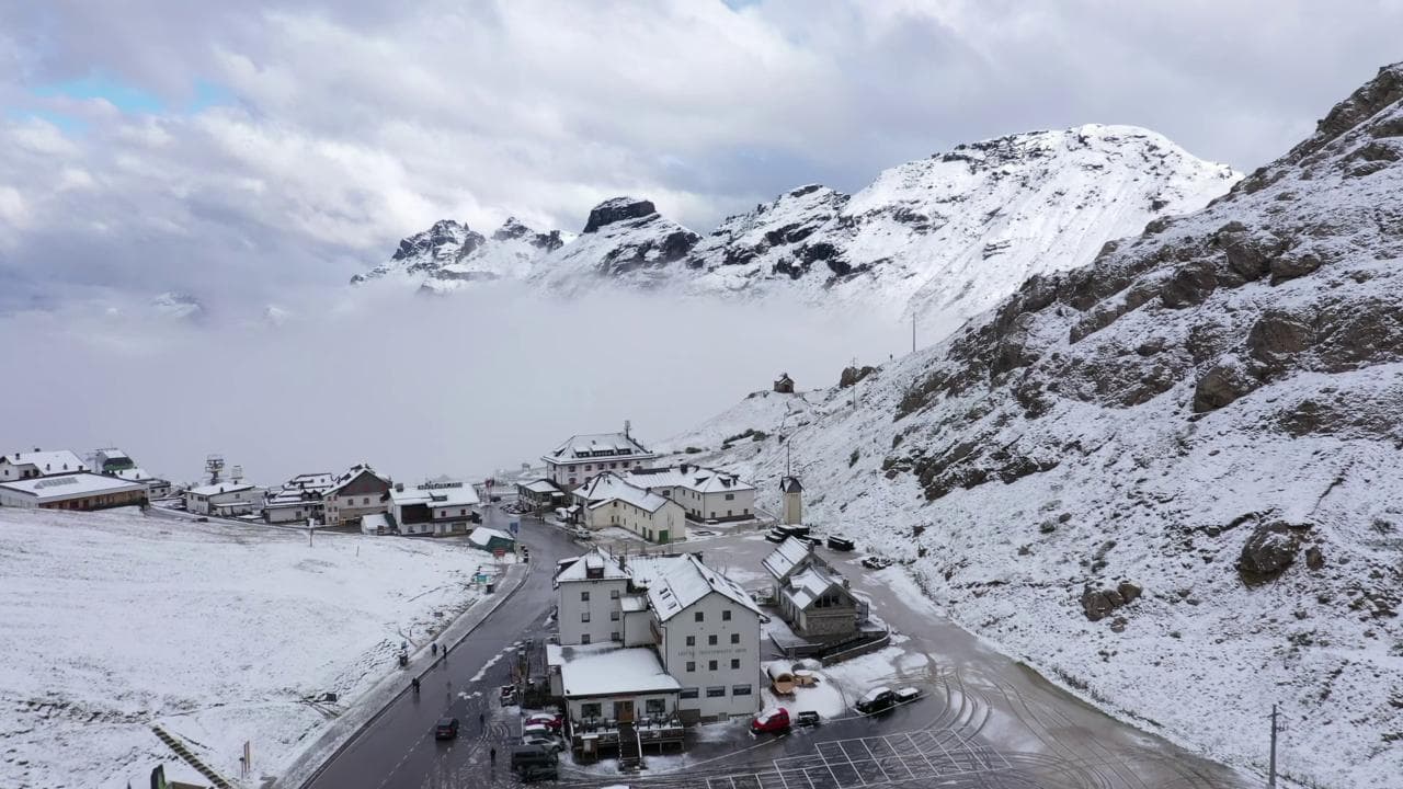 Dolomiti, a settembre è già inverno: il paesaggio innevato visto dal drone