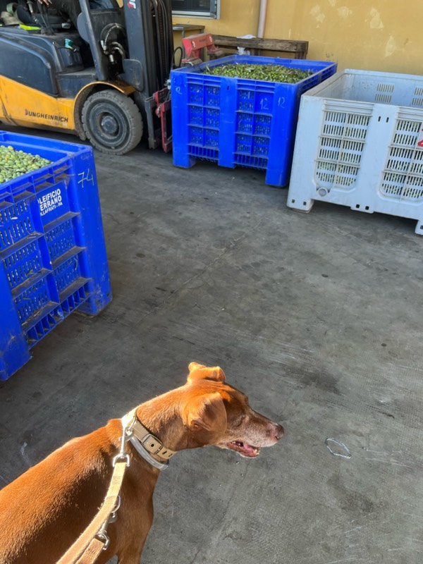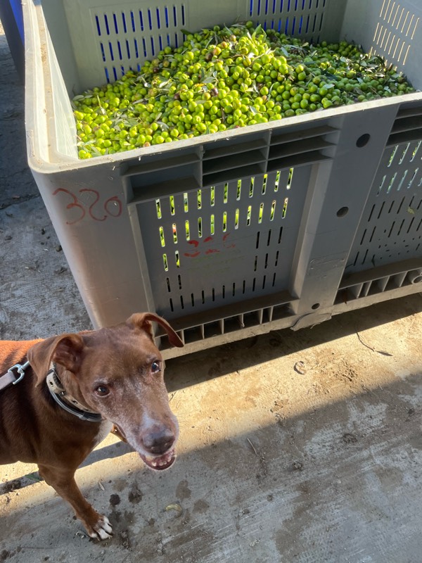 シーズン中は、夜中も稼働し続けるフラントイオ。ゴーゴー(粉砕したオリーブをかき混ぜる機械の音)がずっと耳に響く、工事現場並みの騒がしさに嫌がるかなーと思ったけど、まったくのご機嫌っぷりでした。