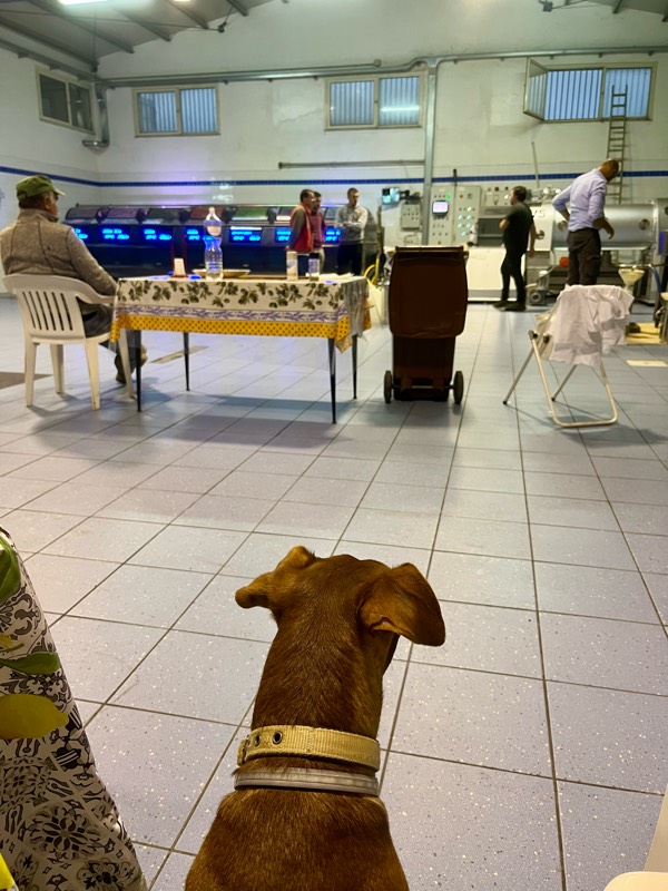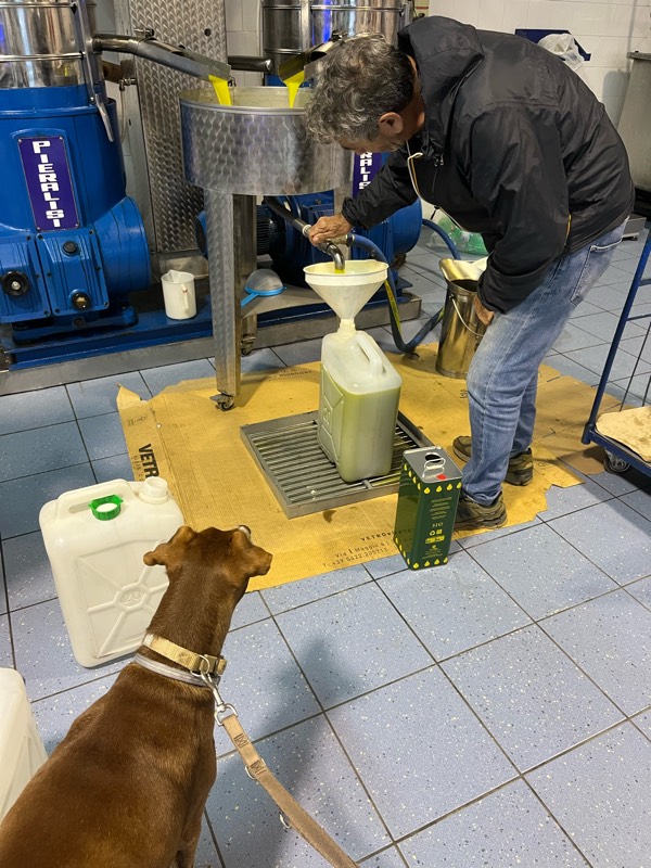 今回は、もちろんボン先輩も一緒。オリーブ収穫はもう経験済みだし、雨が多かったので畑で泥だらけになりそうだったから、シンプルにフラントイオに直行。