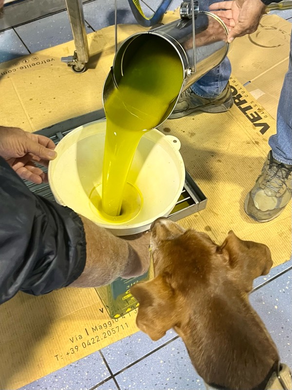 搾りたてオリーブオイルにボン先輩も興味津々