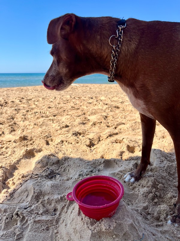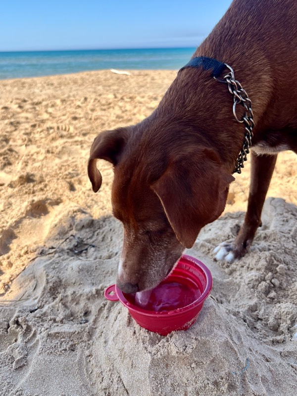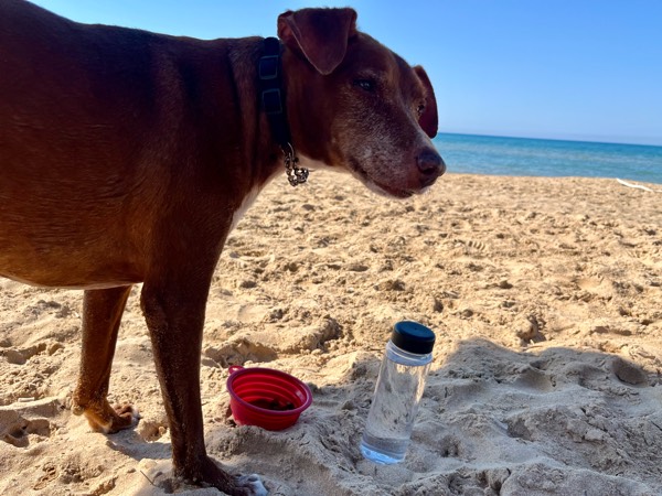 誰もいない朝のビーチを一人、いや二人じめする至福の時間。
