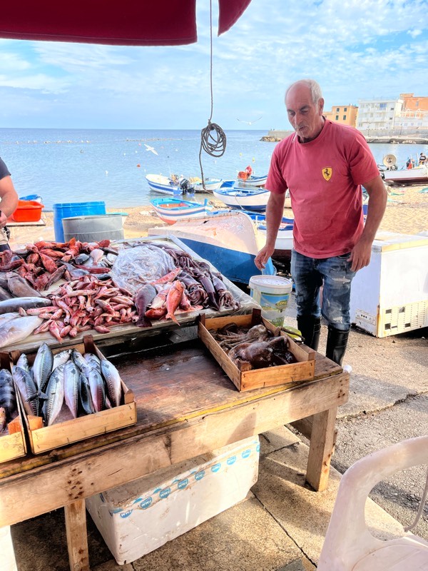以来、たびたび魚介を仕入れに行っているのですが、ある日、「目ぼしい魚なし」で、わざわざパレルモから来てるのにー!とおっちゃんにボヤいていたら、「朝、電話してー」と”俺の電話番号”をくれたのですw。